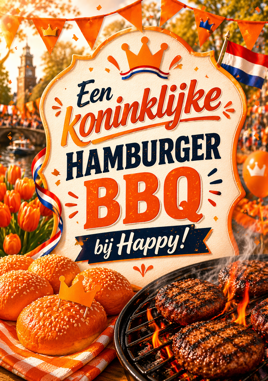 ππ KONINKLIJKE HAMBURGER BBQ BIJ HAPPY! ππ Vier Koningsdag gezellig met ons mee bij Happy! π³π±π§‘ Speciaal voor deze dag serveren we: π 2 royale Tempelier hamburgers p.p. op een overheerlijke oranje brioche broodje met frietjes. π Stel je eigen broodjes samen met cheddar, gebakken ui, verse ui, crispy ui, spek, sla, tomaat, komkommer, augurk [...]